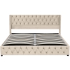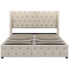 Cama tapizada con cajón hidráulico y somier, sin colchón, 140×200 cm, Beige