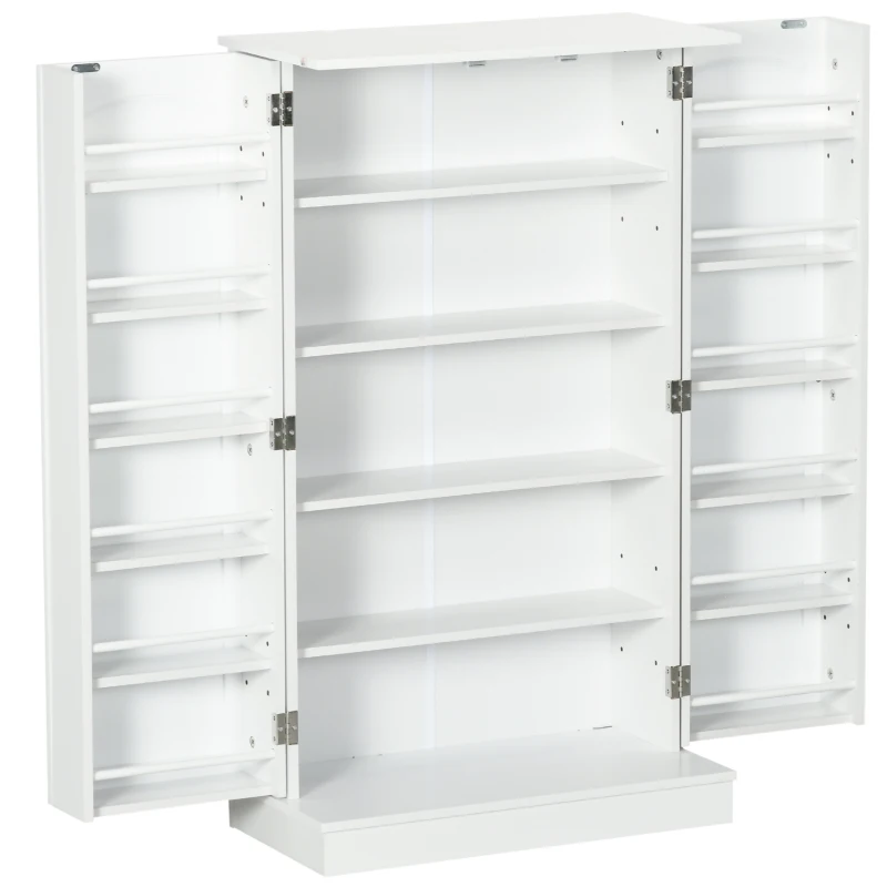 HOMCOM Armario mueble de cocina despensa 2 puertas con 5 estantes y 12 porta especias - 60x30x104 cm - Blanco