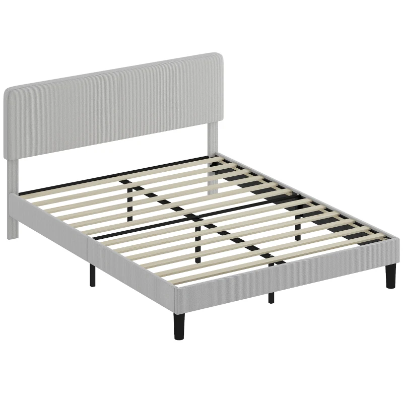 HOMCOM Somier 160x200 cm con Cabecero Ajustable Tapizado en Pana Láminas de Madera Fácil de Montar Gris Claro