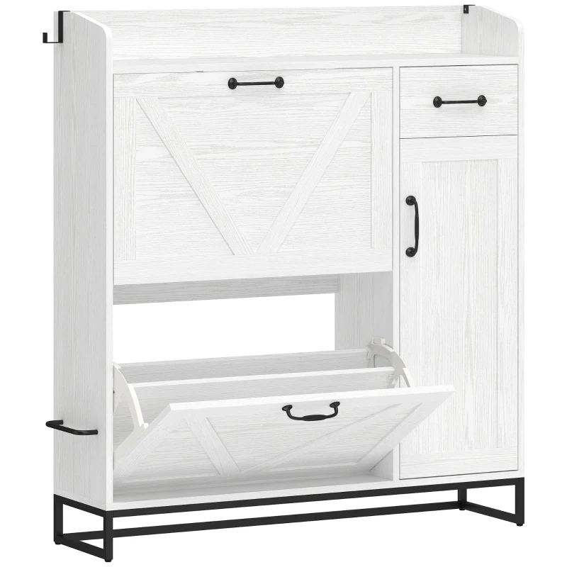 HOMCOM Zapatero Estrecho con 2 Cajones Abatibles Estantes Ajustables para 12 Pares para Espacio Reducido 106,7x26x116cm Blanco