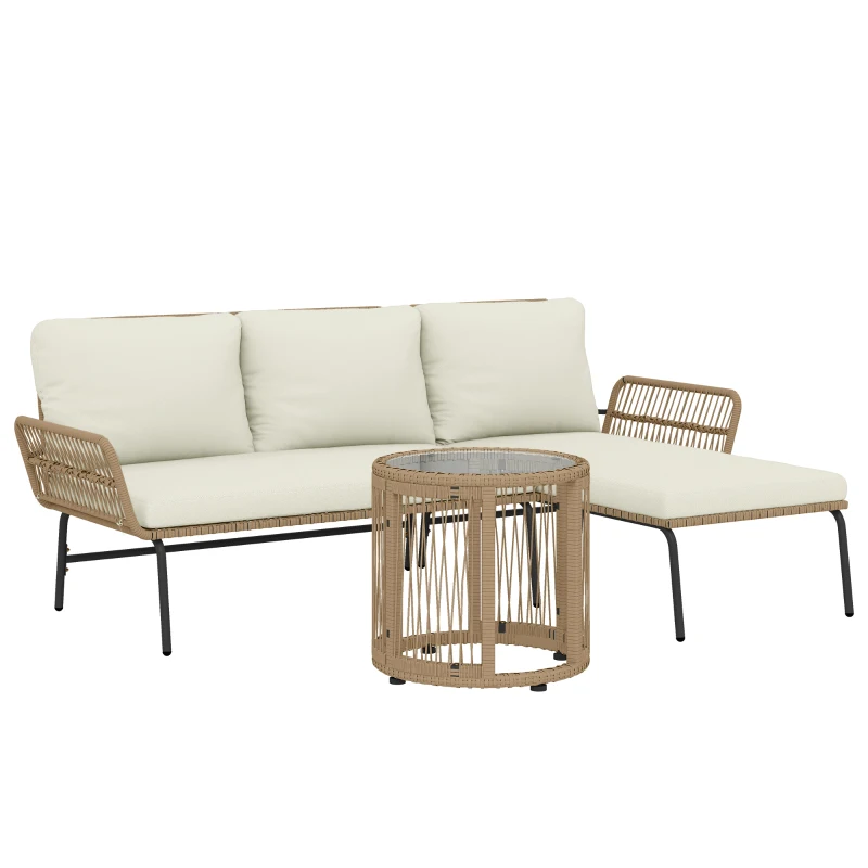 Outsunny Conjunto de Muebles de Jardín Exterior de Ratán con Sofá de 2 Plazas Chaise Longue Cojines y Mesa Auxiliar Crema
